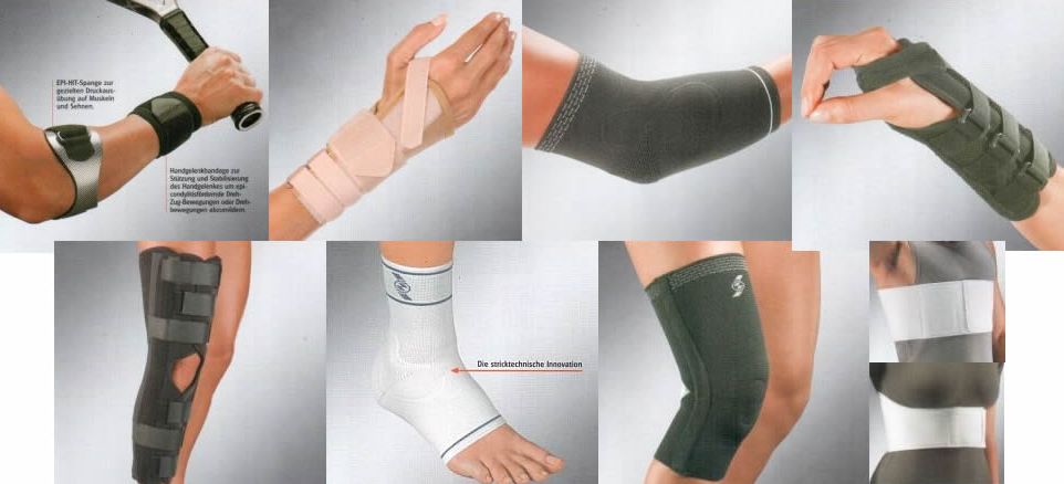 Aceste confecţii ortopedice permit protejarea şi fixarea unor articulaţii ( mână, braţ, genunchi, gleznă, călcâi ) sau a abdomenului.